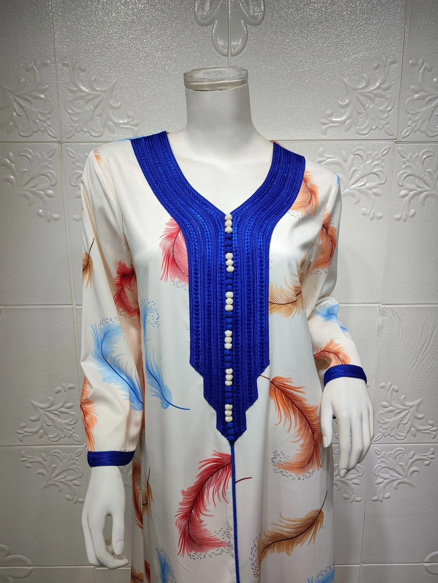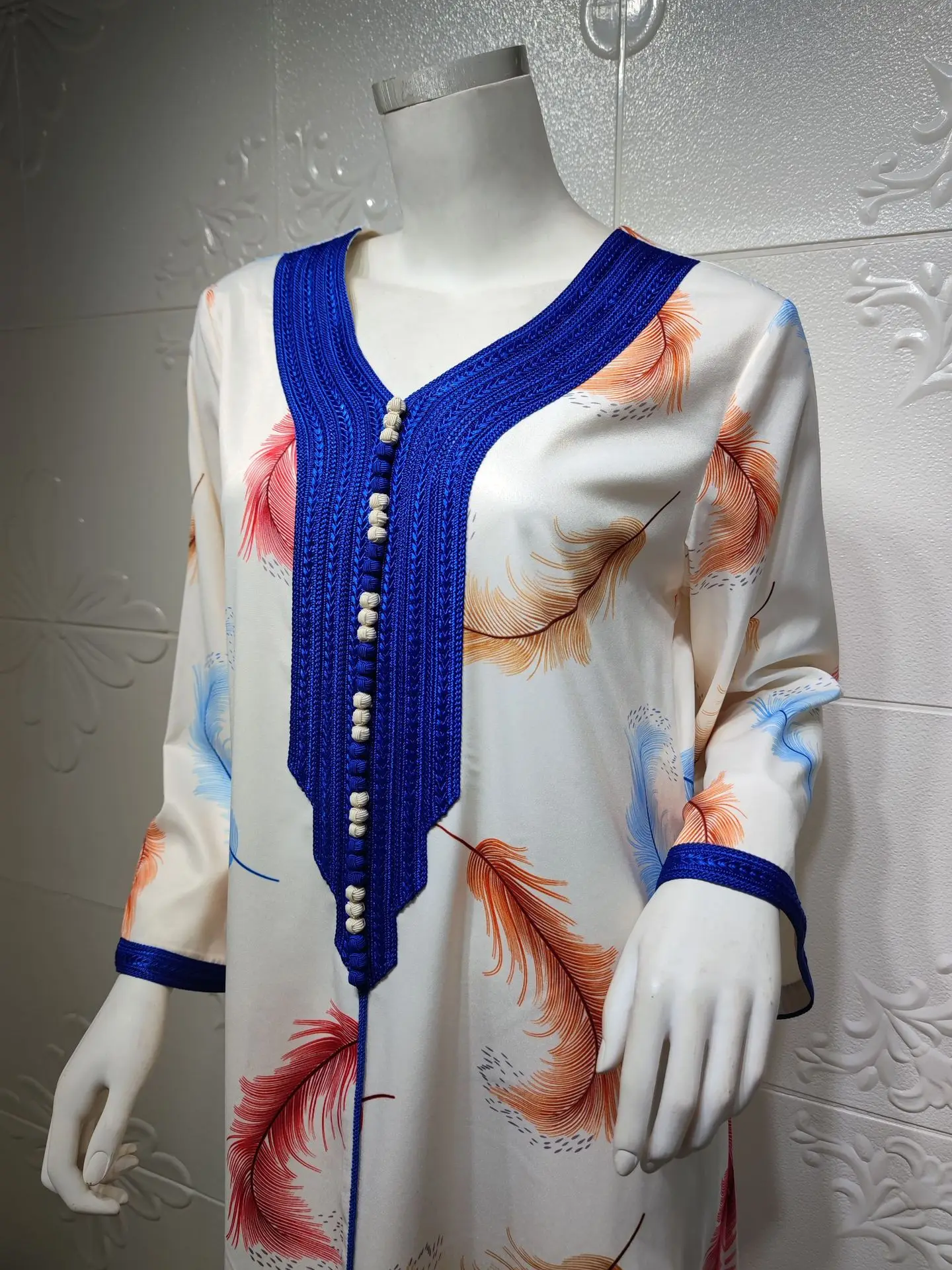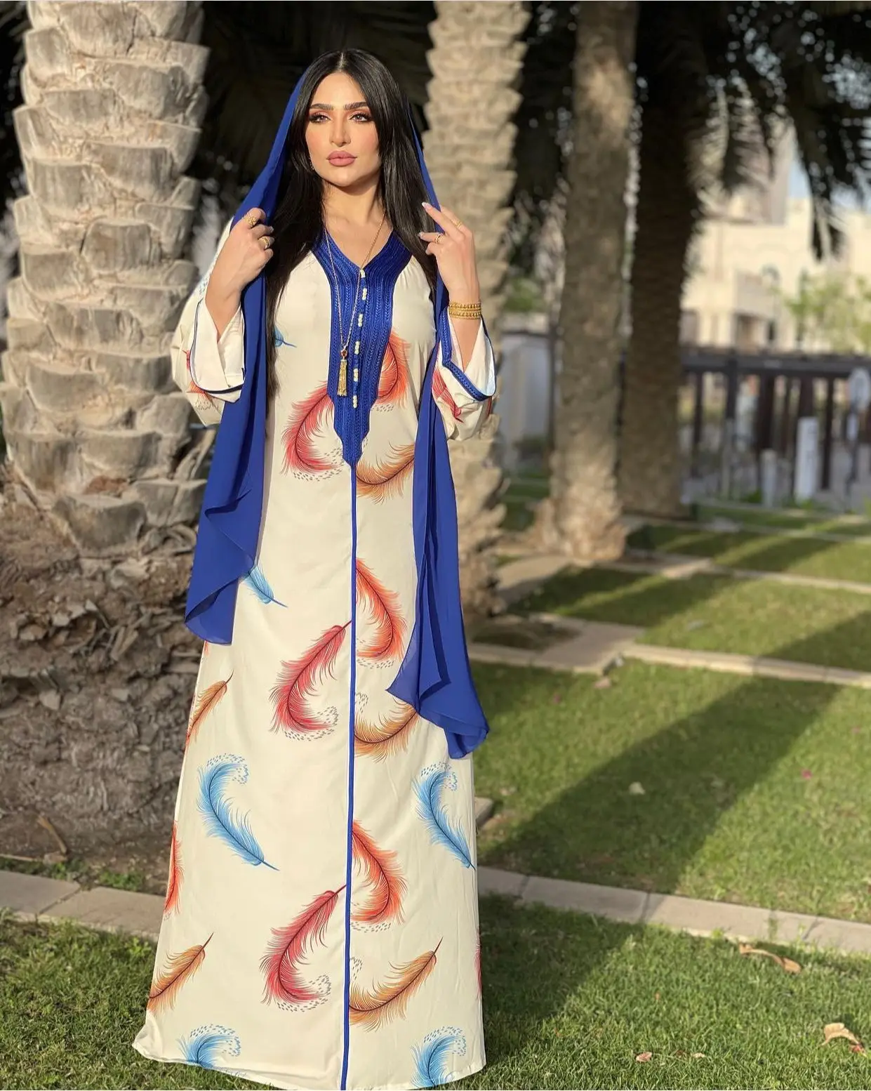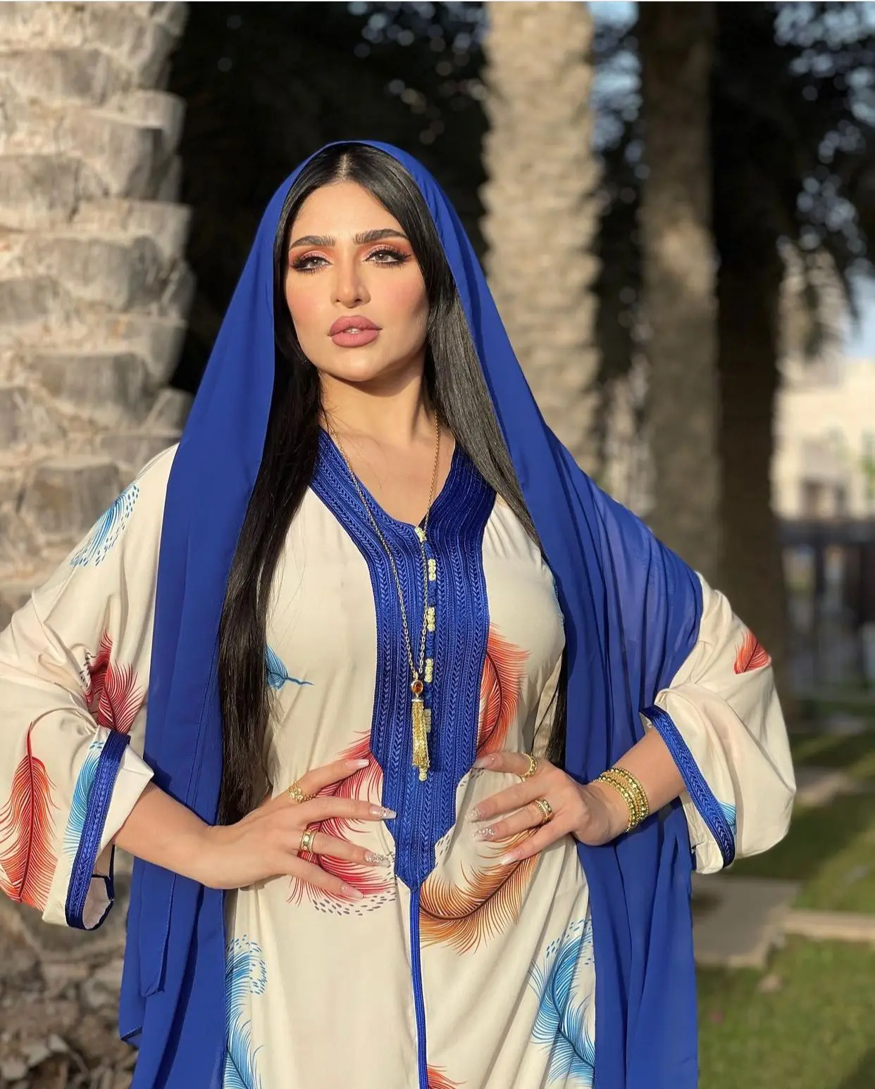 Pour l’achat de cette sublime robe djellaba de couleur beige, recevez gratuitement en cadeau le foulard bleu