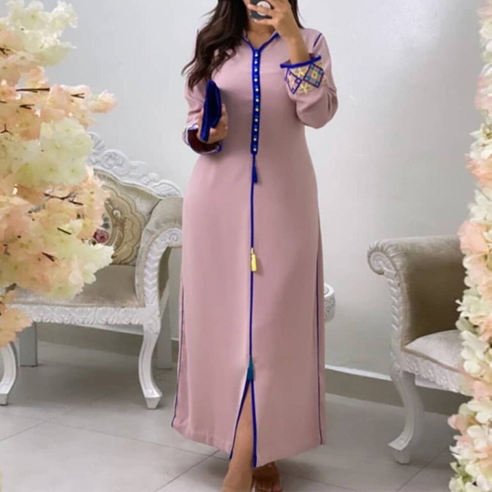 Superbe longue Robe djellaba pour femmes La coupe de la djellaba droite est facile à porter en toutes occasions : djellaba du ramadan, visites familiales, petites cérémonies…