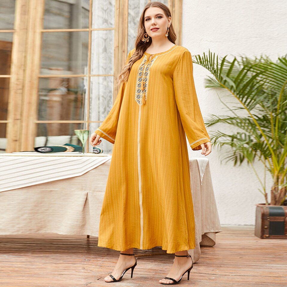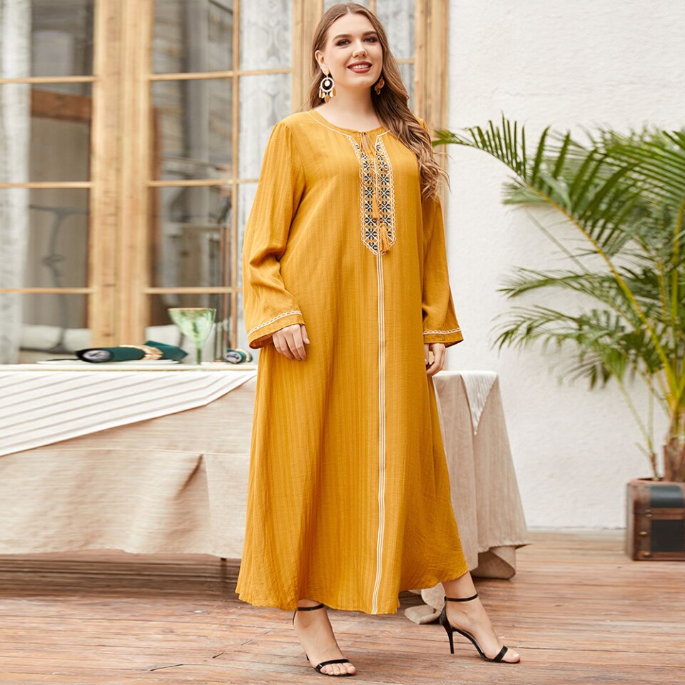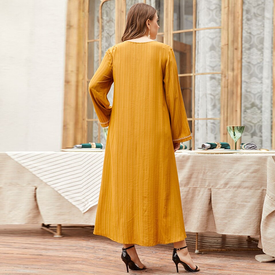 Djellaba marocaine pour femme de la nouvelle collection 2021 de couleur moutard pour les beau jour à venir.